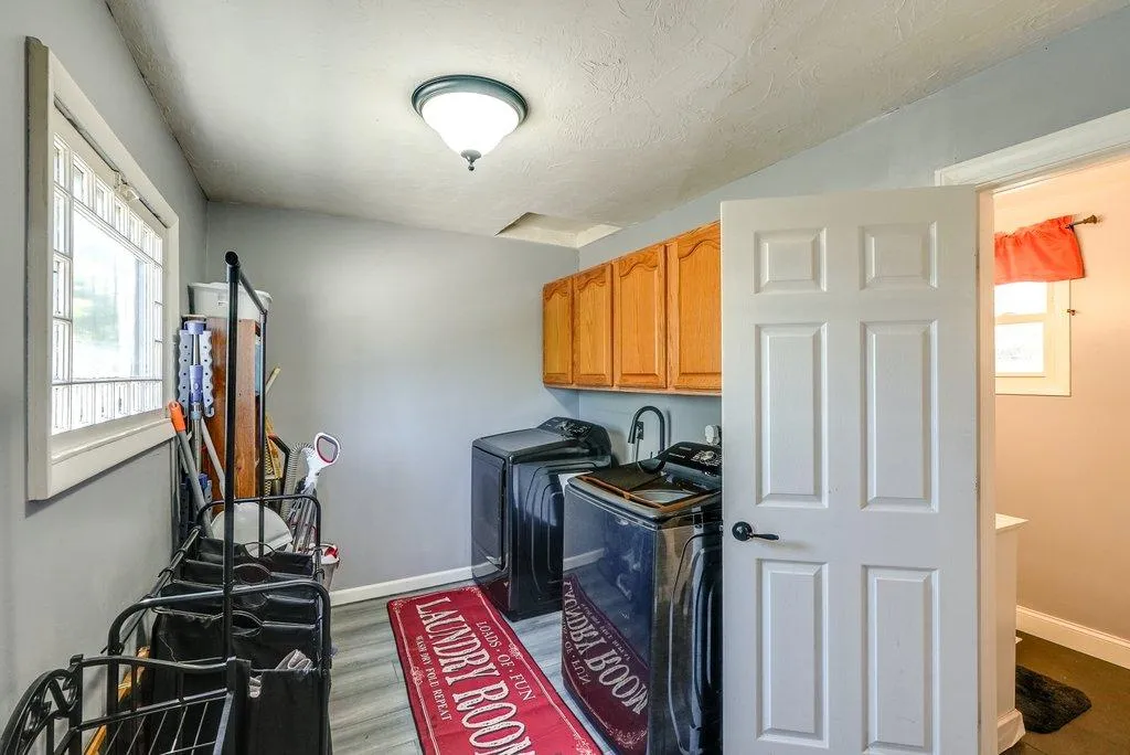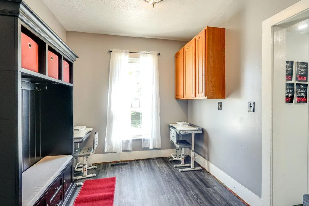 Step inside and notice the meticulous attention to detail throughout. The spacious main level boasts a bedroom, family room, living room, dining room, large office, an adorable mudroom, a functional kitchen with custom-built white cabinets and stainless-steel appliances, a convenient laundry room, and a full bath.